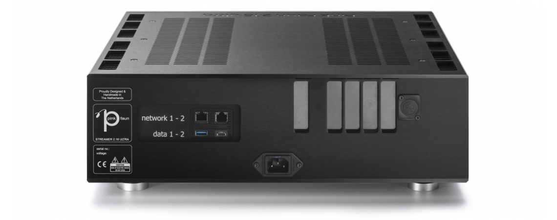 The Pink Faun 2.16 ultra is crafted as an uncompromising digital music playback system, with equal emphasis placed on the quality of its connection to your DAC. Recognizing the critical role of this link in preserving musical integrity, the slots at the rear of the 2.16 ultra allow seamless integration of a variety of digital output cards (or bridges), offering unparalleled flexibility and performance. Pink Faun provides multiple output options, including USB (DSD & PCM), S/PDIF (COAX and AES/EBU), and I2S connections, all of which can be individually clocked using our state-of-the-art ultra OCXO for ultimate precision.
